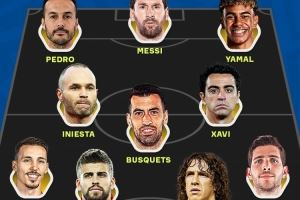 强大!外媒排巴萨青训阵容:梅西、哈维、小白、亚马尔在列